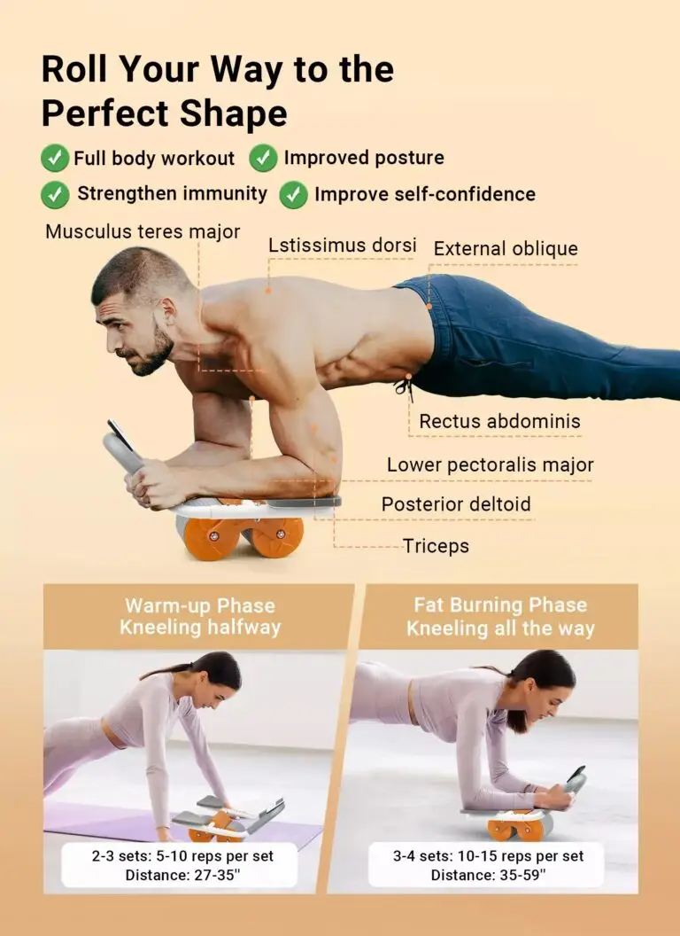 Full-Body Workout in One Tool – Beyond just abs, it targets your arms, shoulders, chest, back, and core. One compact device replaces bulky gym equipment, helping you burn fat, tone muscles, and build strength from the comfort of your living room.